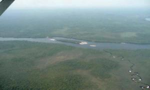 Das Flugzeug startet und die Piste ist das einzige Stück Asphalt, das zu erkennen ist. Als wir in der Luft sind, sehen wir unter uns den Orinoco, übersät von großen Steinen aufgrund der Plage einer schlimmen Trockenheit, und vor uns den immensen grünen Teppich, der sich am Horizont mit dem Himmel vereint.