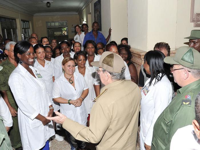Kurz darauf begab sich der Präsident des Staats- und des Ministerrats zum Gynäkologischen Hospital Mariana Grajales, wo er von der Leitung des Hospitals unter anderem über die Maßnahmen informiert wurde, die seit Bekanntwerden des bevorstehenden Hurrikans, zur Aufrechterhaltung des gesamten Dienstes getroffen wurden.