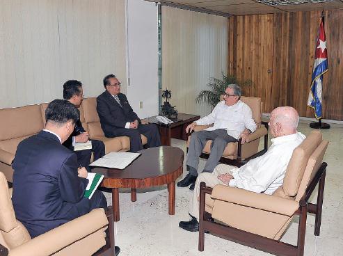 Armeegeneral Raúl Castro Ruz und Compañero José Ramón Machado Ventura, Erster und Zweiter Sekretär des Zentralkomitees der Kommunistischen Partei Kubas empfingen am Donnerstag Nachmittag den Vizepräsidenten des Zentralkomitees der Partei der Arbeit Koreas und Mitglied des Staatskomitees der Demokratischen Volksrepublik Korea Ri Su Yong, der unserem Land einen Besuch abstattet.