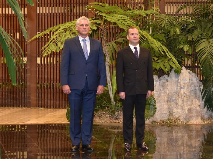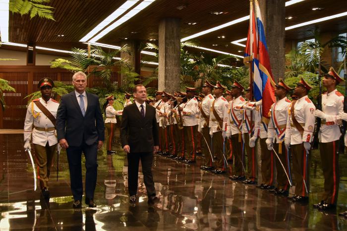 Der Präsident des Staats- und des Ministerrates, Miguel Díaz-Canel Bermúdez, empfing am Donnerstag den Ministerpräsidenten der Russischen Föderation, Seine Exzellenz Dmitri Anatoljewitsch Medwedew, der Kuba einen offiziellen Besuch abstattet.