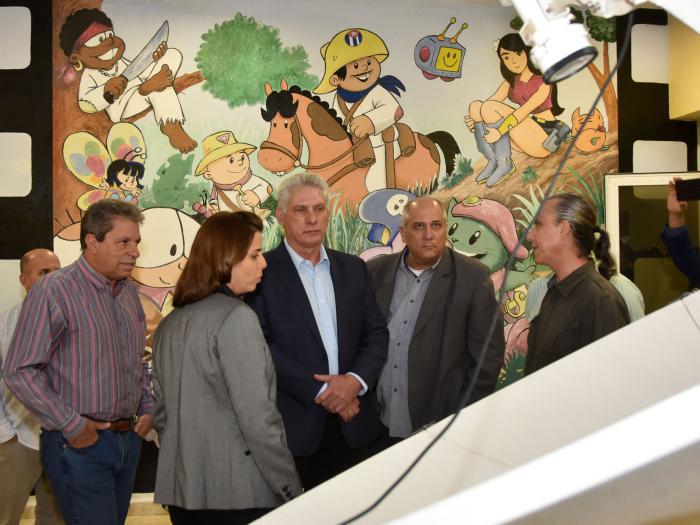 Der Präsident der Republik Kuba, Miguel Díaz-Canel Bermúdez, nahm gestern Nachmittag an der Einweihung des Produktionszentrums von Telesur in Kuba in den Trickfilmstudios des Icaic teil.