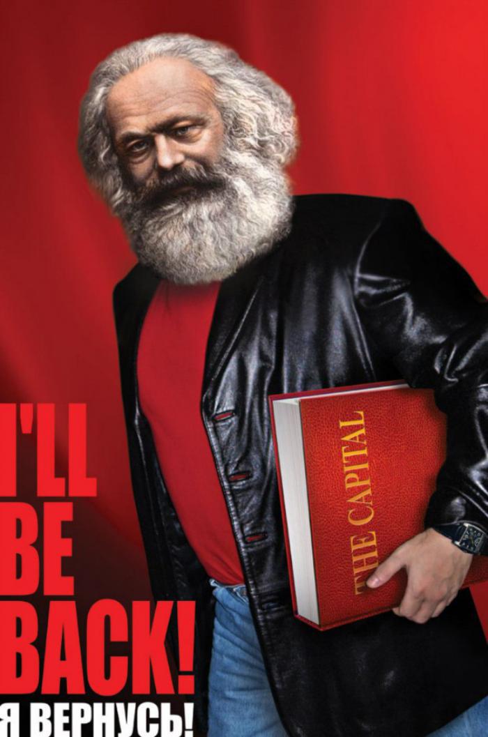 Es gibt eine Zeichnung, die ein Foto als Grundlage hat, auf der Marx in Jeans, rotem T-shirt und Lederjacke erscheint. Unter seinem Arm trägt er sein größtes Werk: Das Kapital. Während er geht, schaut uns das Genie aus Trier ungeduldig an. Das Plakat hat einen Text in englisch und in russisch: „Ich komme zurück“. Auf einem anderen Plakat erscheint derselbe Marx diesmal in Ganzkörperansicht zusammen mit einem Studentenpaar; der Professor und seine Studenten sind fast gleich angezogen. Es ist ein jüngst entstandenes Propagandaplakat der russischen Kommunisten. Sie haben das gleiche mit Lenin gemacht. Im Sitzen, mit einem modernen Laptop auf seinen Knien schreibt er einen seiner glühenden revolutionären Artikel. Die Zeichnungen sprechen ganz ohne Zweifel die jungen Leute an. Es sind Türen die dazu einladen, hindurchzugehen.