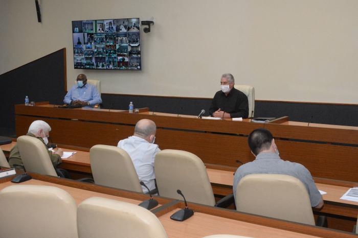 Der Präsident nahm am Treffen der temporären Arbeitsgruppe zur Vorbeugung und Kontrolle des neuen Coronavirus teil, das jeden Nachmittag unter der Leitung von Premierminister Manuel Marrero Cruz stattfindet und bei dem über Videokonferenz alle Gouverneure und der Bürgermeister der Insel der Jugend zugeschaltet sind. Dort wurde erläutert, wie man die erste Etappe der Erholung umsetzt, die am Donnerstag, dem 18.Juni in 14 Territorien des Landes beginnt.