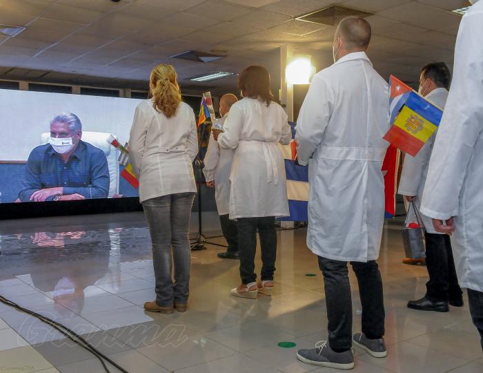 Wie es für uns in den letzten Tagen schon zur Gewohnheit wird, haben wir das Vergnügen und die Genugtuung, eine weitere Gruppe unseres wertvollen Gesundheitspersonals zu empfangen, das, integriert in der Henry-Reeve-Brigade, in den verschiedenen medizinischen Missionen bei der Bekämpfung der Pandemie in anderen Ländern solidarisch internationale Zusammenarbeit geleistet hat.