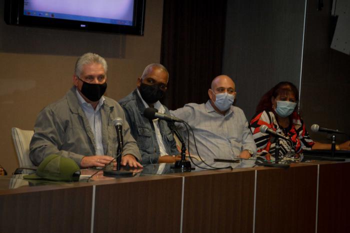 In den ersten Momenten des Austauschs, der im integrierten Technologischen Forschungskomplex (CITI) stattfand und an dem die Führung von Partei und Regierung der Hauptstadt sowie Dozenten und Vertreter aller Fakultäten teilnahmen, sagte der Generalsekretär der UJC in der CUJAE Danhiz Díaz Pereira, dass sich alle als Mitglieder dieser großen Familie betrachten könnten, der Präsident der Republik eingeschlossen, dem der junge Mann für seine Anwesenheit dankte. Danhiz zählte Aufgaben auf, denen sich die Mitglieder dieser Universität „in diesen Zeiten des Kampfes des ganzen Volkes“ widmeten. Seiner Meinung nach war dies ein Kampf der Revolution: Während sich eine Gruppe von Arbeitern daran machte Räume innerhalb des Universuitätskomplexes zu finden, die inmitten von COVID-19 für die Isolierung dienen konnten, gingen viele Studenten in die Gemeinden, um dem Land zu helfen.