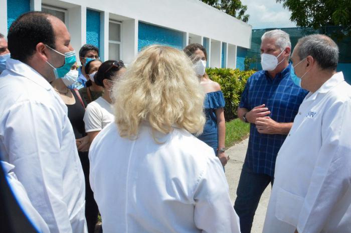 „Das war die Freude des Tages“, sagte der Staatschef am Samstag vor einer Vertretung von Wissenschaftlern aus dem Finlay Institut für Impfstoffe (IFV) und anderen Institutionen, die an der Schaffung von Soberana beteiligt waren und sofort zusammenkamen, als sie die Nachricht erfuhren, um mit dem Präsidenten zusammenzutreffen.