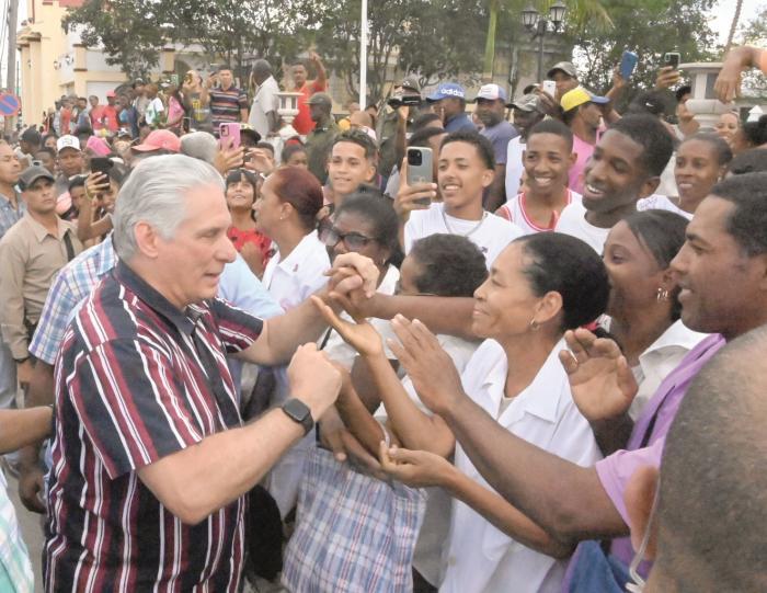 Unter den Klängen der Conga wurde das Staatsoberhaupt begrüßt. Was werden die Hasser jetzt erfinden? In den beiden Orten erkundigt sich Díaz-Canel, wie schon seit Januar letzten Jahres, in Begleitung des Mitglieds des Politischen Büros und Sekretärs für Organisation des Zentralkomitees, Roberto Morales Ojeda, vor Ort über die lokalen Probleme, die die Bevölkerung am meisten betreffen, und über die Maßnahmen, die zur Korrektur der Verzerrungen und zur Ankurbelung der Wirtschaft ergriffen werden.
