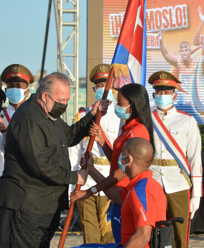 „Immer wenn ihr zur Verteidigung dieser Fahne antretet, wird das kubanische Volk – ungeachtet der Entfernung – bei euch sein“, sagte Manuel Marrero Cruz, Mitglied des Politbüros und Premierminister der Republik Kuba, während der Verabschiedung der kubanischen Delegation, die uns bei den Paralympischen Spielen in Tokio vertreten wird.