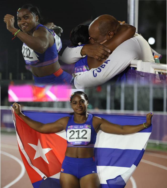 Neben ihr stand ihr Trainer, Raúl Calderón, bescheiden, aber ebenso glücklich über das, was an diesem unvergesslichen Abend für beide geschah. So krönte die Leichtathletikmannschaft der Insel einen hervorragenden Tag mit Medaillen in allen fünf gewinnträchtigen Disziplinen. Neben Alejandras Titel komplettierten Silbermedaillen für Leiker, Rosmaiby und die der Staffel sowie Bronze für Claudia den Medaillenernte an diesem Tag.