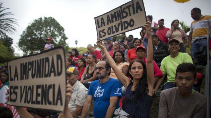 CARACAS- Tausende von Venezolanern kamen am Donnerstag zu einer Kundgebung bis um Miraflores Palast, wo sie ihre Ablehnung des Gesetzes zur Amnestie und zur Nationalen Versöhnung, wie es bei der zweiten Lesung von der Mehrheit der Abgeordneten der Opposition in der Nationalversammlung verabschiedet wurde, zum Ausdruck brachten.