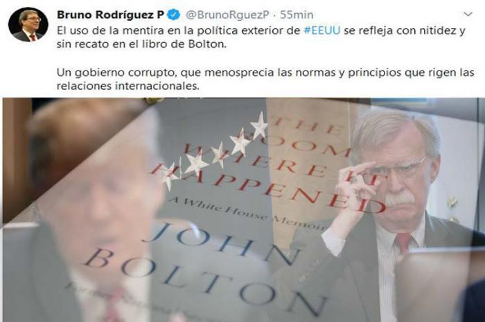 Der kubanische Außenminister Bruno Rodríguez erklärte heute, dass das Buch des ehemaligen nationalen Sicherheitsberaters der Vereinigten Staaten, John Bolton, die Verwendung von Lügen in der Außenpolitik dieses Landes widerspiegelt.