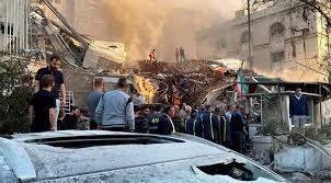 In einer weiteren Missachtung der internationalen Gemeinschaft griffen israelische Flugzeuge ein Viertel in der syrischen Hauptstadt, in dem sich die iranische Botschaft befindet, mit Raketen an. Mehrere nahe gelegene Gebäude wurden schwer beschädigt, das iranische Konsulat wurde zerstört.
