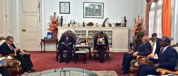 Er bekräftigte die Bereitschaft der kubanischen Regierung, die Wirtschafts-, Handels- und Kooperationsbeziehungen in Bereichen von beiderseitigem Interesse auszuweiten und zu vertiefen, und bedankte sich für die Verurteilung der Blockade gegen Kuba durch Simbabwe.
