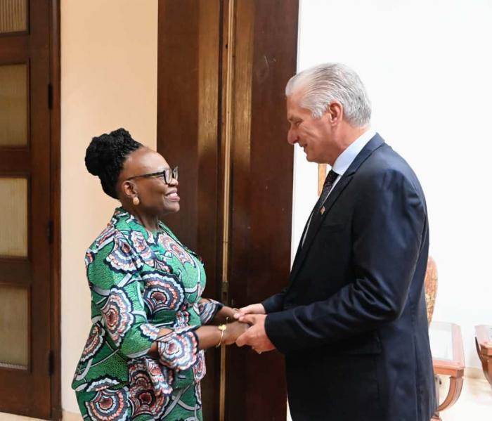 Der erste Sekretär des Zentralkomitees der Partei und Präsident der Republik, Miguel Díaz-Canel Bermúdez, empfing im Palast der Revolution Selma Ashipala-Musavyi, Ministerin für internationale Beziehungen und Handel der Republik Namibia.