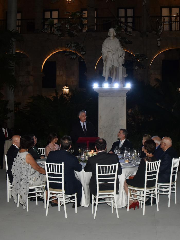 „Wir sind eine Gesellschaft, die sich erneuert, evolutioniert und voranschreitet und gleichzeitig ihre Traditionen und Werte bewahrt und ihre Rechte verteidigt. Uns leiten klare Prinzipien von Unabhängigkeit und Souveränität in der Gewissheit, dass wir uns auf einem Weg befinden, der auf das Wohlergehen unseres Volkes gerichtet ist“, das sagte Präsident Miguel Díaz-Canel Bermúdez bei dem Abendessen, das er zu Ehren Ihrer Majestäten Felipe IV. und Letiza Ortiz, Könige von Spanien im Palast der Capitanes Generales in Havanna gab.