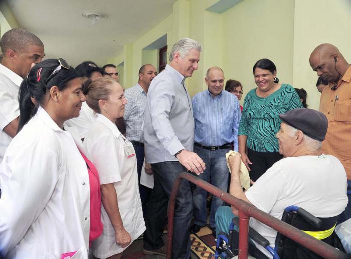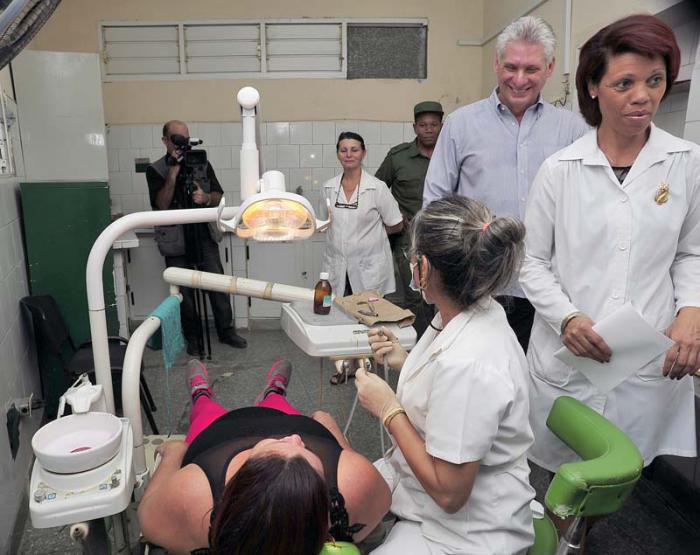Bereits in der medizinischen Einrichtung, die im Jahr 1983 von Comandante en Jefe Fidel Castro Ruz ausgewählt worden war, um das Programm „Arzt und Krankenschwester der Familie“ einzuleiten, wurde er von der Direktorin der Poliklinik, Esmiraida Parra Castañeda, begrüßt. Sie erläuterte, dass der Gesundheitsbereich mehr als 25 000 Einwohner umfasst, denen Notdienste, klinisches Labor und Krankenfahrzeuge, Radiologie und Ultraschall-Diagnostik, Physiotherapie und Rehabilitation, Zahnmedizin, Allergiebetreuung und kleinere chirurgische Eingriffe, sowie die Sprechstunde der umfassenden Betreuung des Diabetikers zur Verfügung stehen. Ebenso informierte sie über die Entwicklung von Technologie, Lehre und Forschung.
