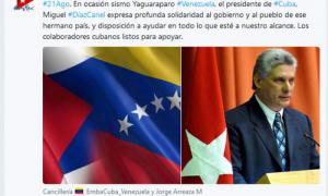 Der kubanische Präsident Miguel Díaz-Canel bekundete seine tiefe Solidarität mit der Regierung und dem Volk Venezuelas, nachdem sich am Dienstag ein Erdbeben von 6,3 Grad 19 km entfernt vom Dorf Yaguaraparo im Staat Sucre ereignet hatte.