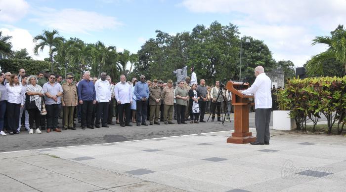 Während der Zeremonie, an der Vertreter der höchsten Führungsebene des Landes teilnahmen, sprach José Ramón Machado Ventura, Zweiter Sekretär des Zentralkomitees der Partei, um der Familie und den Freunden der ewigen kubanischen Pädagogin sein Beileid auszusprechen und einige Passagen ihres Lebens hervorzuheben, die sie in der Geschichte unseres revolutionären Prozesses verewigt haben.