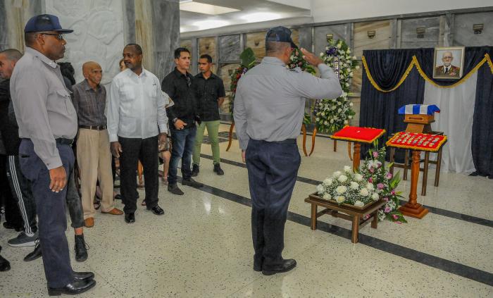 Der Erste Sekretär der Kommunistischen Partei Kubas, (PCC) Armeegeneral Raúl Castro Ruz, der Zweite Sekretär der PCC José Ramón Machado Ventura, der Minister der Revolutionären Streitkräfte Armeekorpsgeneral Leopoldo Cintra Frías und Generalmajor der Reserve Samuel Rodiles Plana hielten die letzte Ehrenwache bei seinen sterblichen Überresten.