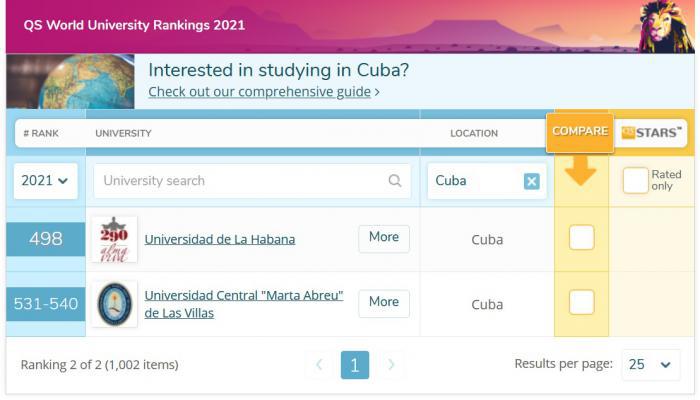 Die Universität Havanna (UH) und die Zentraluniversität „Marta Abreu“ von Las Villas (UCLV) eroberten relevante Positionen in der Weltrangliste der Universitäten QS 2021, der jährlichen Auflistung der besten tausend Hochschuleinrichtungen auf internationaler Ebene, wobei Faktoren wie das Ansehen von Akademikern, das Verhältnis Studenten-Dozenten, die Zahl der Studenten nach Fakultäten und das Verhältnis von Professoren und internationalen Studenten berücksichtigt wurden.