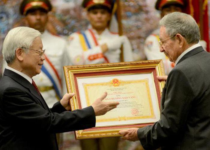 Beide Vorsitzenden hoben die Freundschaft, die Solidarität und das gegenseitige Vertrauen hervor, die die beiden Völker, Parteien und Regierungen während sechs Jahrzehnten vorbildlicher Beziehungen verbunden haben, und ratifizierten den Beschluss, die historischen Bande der Brüderlichkeit, die von den Führern Fidel Castro Ruz und Ho Chi Minh geschmiedet wurden, weiter zu stärken.