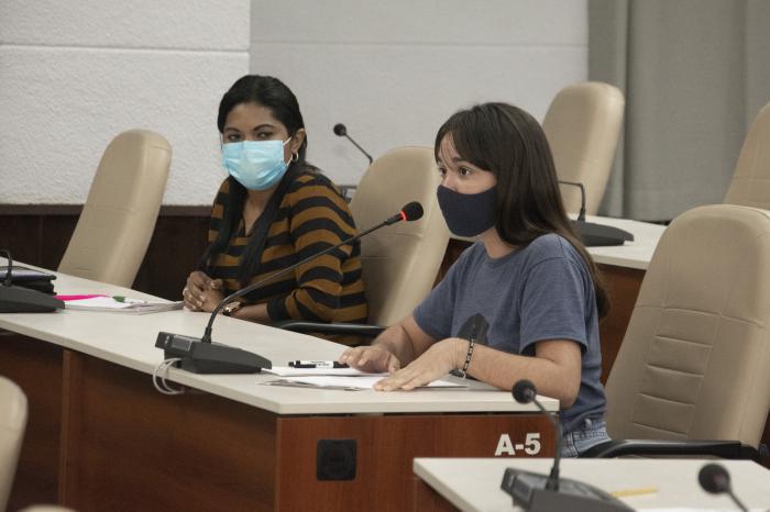 Die neu gewählte Präsidentin der Studentenvereinigung, Karla Santana Rodríguez, sprach über die Zufriedenheit, Zuversicht und dem unbestreitbaren Willen der Studenten, an dieser Arbeit teilzunehmen.