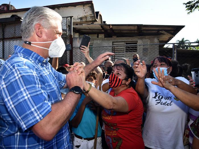 „Jetzt sind wir alle mit dem Erreichten zufrieden", sagte Díaz-Canel. Wir haben noch viel zu tun, und vor allem müssen wir das Erreichte aufrechterhalten, was mit Ihnen, mit den alltäglichen Details zu tun hat, betonte der Erste Sekretär des Zentralkomitees der Kommunistischen Partei gegenüber den Einwohnern. "So verbessern wir uns, und Sie machen mit", sagte er ihnen.