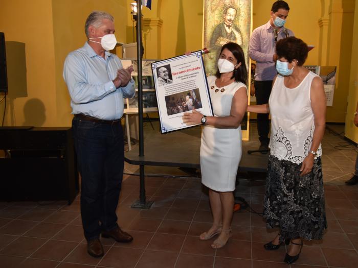 Der Akt der Wiedereröffnung des Schuljahres war eine angemessene Würdigung. Präsident Díaz-Canel Bermúdez überreichte in Begleitung der Bildungsministerin mehrere Auszeichnungen, darunter die von der Bildungsdirektion der Provinzhauptstadt an das Büro des Stadthistorikers verliehene Auszeichnung für die Bemühungen und die hervorragenden Ergebnisse der geleisteten Arbeit im Namen der Lehrer, Schüler und ihrer Familien. Sie wurde von Perla Rosales Aguirreurreta, der stellvertretenden Direktorin des Büros des Stadthistorikers von Havanna, entgegengenommen.