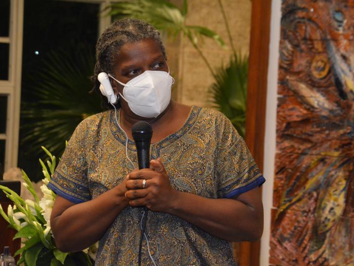 Gail erläuterte die Herkunft eines Geschenks, das Pastors for Peace dem kubanischen Präsidenten überreichte: eine Trommel, die von den Trommlerinnen der Riverside Cathedral in New York gesegnet wurde, denen sich Díaz-Canel während seines Besuchs in dieser Stadt im Jahr 2018 anschloss, als er vor der 73. UNO- Generalversammlung sprach.