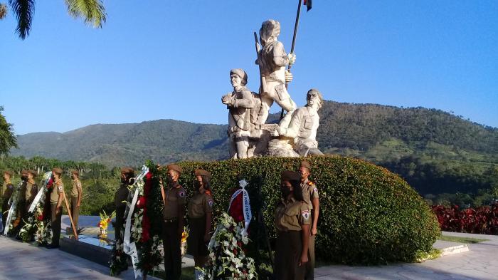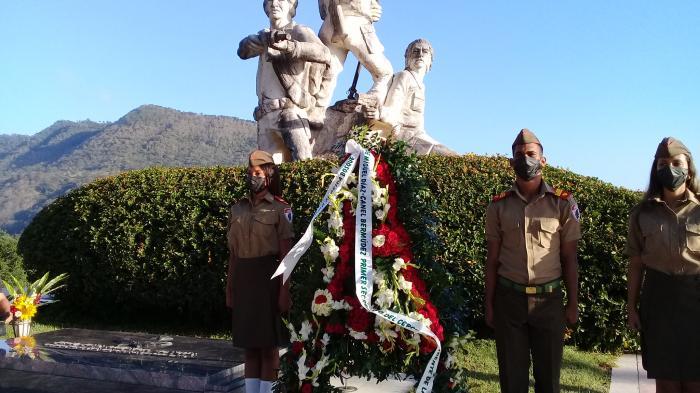 Bei der Ehrung am Fuße des Grabmals, das seine sterblichen Überreste beherbergt, im Monument auf der Loma de la Esperanza, auf dem das Mausoleum für die Helden und Märtyrer der Dritten Front Mario Muñoz steht, wurden ebenfalls Kränze im Namen des Präsidenten der Nationalversammlung der Volksmacht und des Staatsrats, Esteban Lazo Hernández, und des kubanischen Volkes niedergelegt.