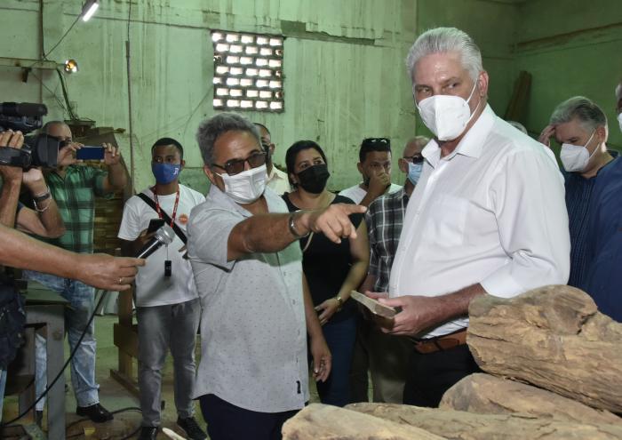 Díaz-Canel informierte sich auch über die Verhandlungen mit ausländischen Unternehmen über die Aufnahme von Exporten. Die durch die US-Blockade verursachten finanziellen Schwierigkeiten sowie die Inflation und ihre Auswirkungen auf die Kosten, die das kubanische Angebot wettbewerbsunfähig machen können, kamen in dem Gespräch zur Sprache, in dem der Präsident darauf hinwies, dass es für viele der Schwierigkeiten alternative Lösungen geben könne, die bisher noch nicht existierten, da diese Szenarien für das Land neu seien.