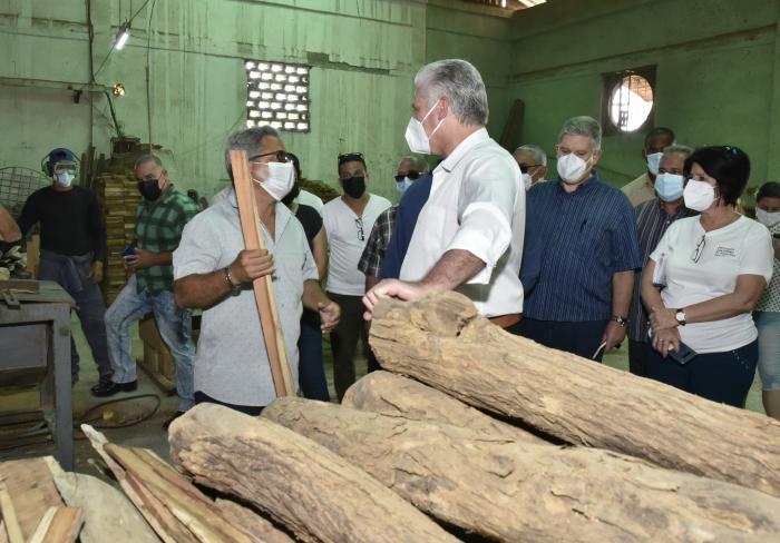 Die Nachmittagssitzung des Regierungsbesuchs begann in der Gemeinde Cotorro in den Werkstätten der Baugenossenschaft G'Obras (gegründet im Februar 2015), die sich durch die Herstellung von Mörtel aus 100 % kubanischen Rohstoffen und Holzschreinereiarbeiten aus Marabú auszeichnet.