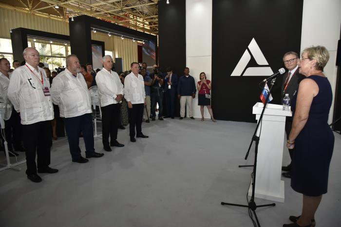 Anschließend nahm der Staatschef an der Eröffnung des russischen Pavillons teil, der vom Ministerium für Industrie und Handel der eurasischen Nation organisiert wurde. Der Botschafter dieses Landes, Anatoli Guzkov, wünschte Kuba viel Erfolg bei dieser Messe des größten Handelsaustausches und bezeichnete die bilateralen Beziehungen als strategisch und mit einem außerordentlichen Entwicklungspotenzial.
