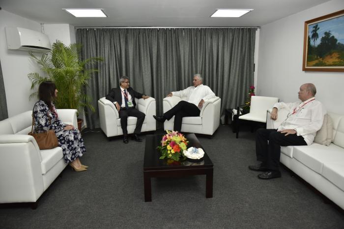 Der Präsident der Republik, Miguel Díaz-Canel Bermúdez, traf in den Hallen der ExpoCuba mit den Leitern der Delegationen der Vereinigten Arabischen Emirate (VAE), die zum ersten Mal an der Messe in Havanna teilnehmen, und Nicaraguas zusammen.