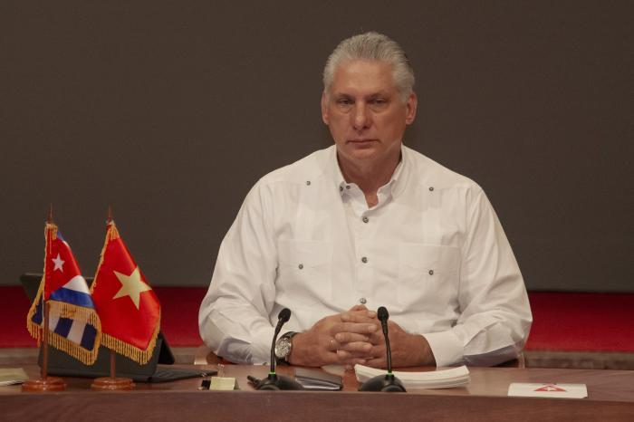 „Mit einer herzlichen und brüderlichen Umarmung" für das vietnamesische Volk, das Mitglied des Politbüros und Generalsekretär der Kommunistischen Partei Vietnams, Nguyen Phu Trong, und für die gesamten Führung dieser Organisation begann der Erste Sekretär des Zentralkomitees der Kommunistischen Partei Kubas, Miguel Díaz-Canel Bermúdez, am frühen Mittwochmorgen das virtuelle Treffen zwischen den beiden Parteiführern.