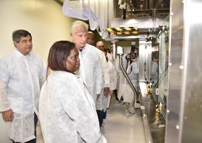 „Eine solche Anlage in einem solchen Jahr fertig zu stellen, ist eine Meisterleistung", sagte der Präsident, als er die „erstklassigen" Räumlichkeiten der Fabrik besichtigte, die zur Unternehmensgruppe BioCubaFarma gehört.