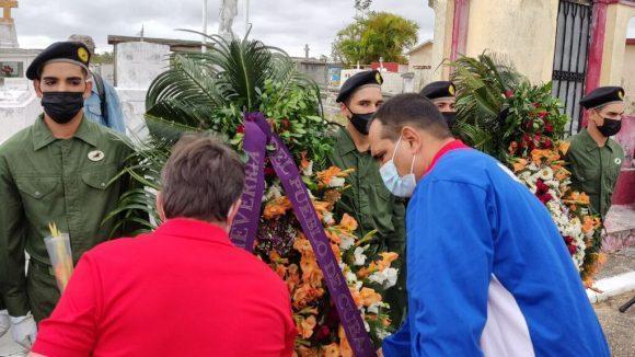 Blumengebinde von Armeegeneral Raúl Castro Ruz und dem Ersten Sekretär des Zentralkomitees der Kommunistischen Partei Kubas und Präsidenten der Republik, Miguel Díaz-Canel Bermúdez, begleiteten die Ehrung des Studentenführers José Antonio Echeverría und der Märtyrer des 13. März, dem 66. Jahrestag seines Todes.