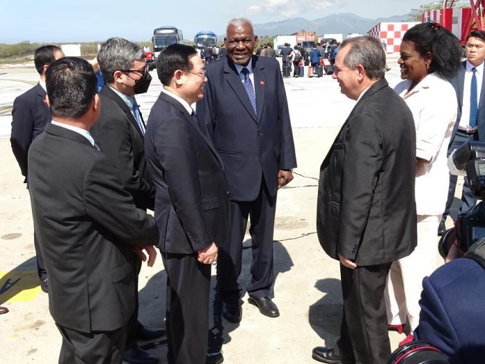 Vom Flughafenterminal aus begaben sich der hochrangige Besucher und die Führungspersönlichkeiten, u. a. aus der Wirtschaft, die seine Delegation bildeten, zum Friedhof Santa Ifigenia, wo sie nach dem Abspielen der kubanischen und der vietnamesischen Nationalhymne der Ablösung der Ehrenwache auf dem Weg der Gründer der Nation beiwohnten.