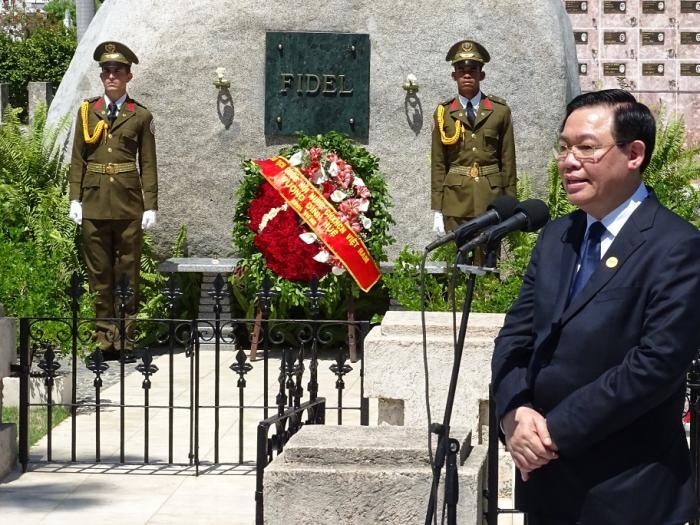 SANTIAGO DE CUBA - Vor dem Abschluss seines Kuba-Besuches am gestrigen Sonntag kam Vuong Dinh Hue, Mitglied des Politbüros der Kommunistischen Partei der Sozialistischen Republik Vietnam und Präsident der Nationalversammlung, in diese Stadt, um dem Comandante en Jefe Fidel Castro Ruz die Ehre zu erweisen.
