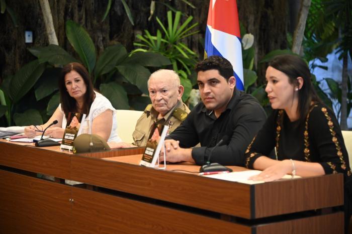 Den Präsidenten der Republik begleiteten Premierminister Manuel Marrero Cruz, der Vizepräsident der Republik Salvador Valdés Mesa und in ganz besonderer Weise der Vizepremierminister und Kommandant der Revolution Ramiro Valdés Menéndez und der Kommandant der Rebellenarmee José Ramón Machado Ventura, die zusammen mit Guillermo Symbole unseres historischen Guerilla- und Revolutionskampfes sind.