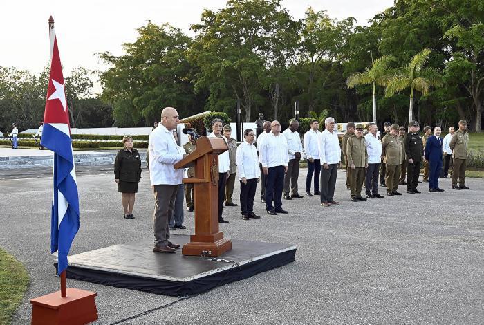 Vor der ewigen Flamme, die die Verstorbenen ehrt, wurden Blumengebinde im Namen des Kubanischen Instituts für Völkerfreundschaft, der Russischen Föderation, der Republiken Weißrussland, Kasachstan und Aserbaidschan sowie des kubanischen Volkes niedergelegt. An diesem Tag waren auch Mitglieder des Politbüros Roberto Morales Ojeda, Sekretär für Organisation des Zentralkomitees der Partei, General Álvaro López Miera, Minister der Revolutionären Streitkräfte, Generalmajor Lázaro Alberto Álvarez Casas, Innenminister, und Außenminister Bruno Rodríguez Parrilla anwesend.