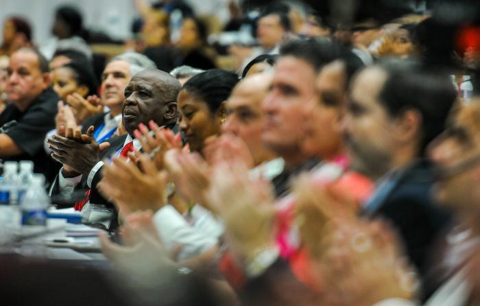 Dies ist die Revolution von Fidel, von Raúl, von Ramiro, von Guillermo, von Machado, von der heldenhaften Generation des hundertsten Geburtstages des Apostels, deren Ideen uns weiterhin inspirieren, und es ist die Revolution von uns allen, die wir in diesem Saal sind, um den Willen des heldenhaften, würdigen und rebellischen Volkes durchzusetzen, das zu vertreten wir die Ehre haben! (Lang anhaltender Beifall).