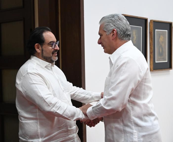 Der Erste Sekretär des Zentralkomitees der Kommunistischen Partei und Präsident der Republik, Miguel Díaz-Canel Bermúdez, würdigte die Unterstützung, die die Lateinamerikanische Energieorganisation (OLADE) Kuba i gewährt hat, "um die Herausforderungen der Energiewende zu bewältigen", als er Andrés Rebolledo Sitmans, Exekutivsekretär der OLADE, empfing.