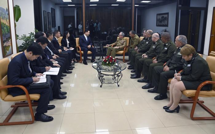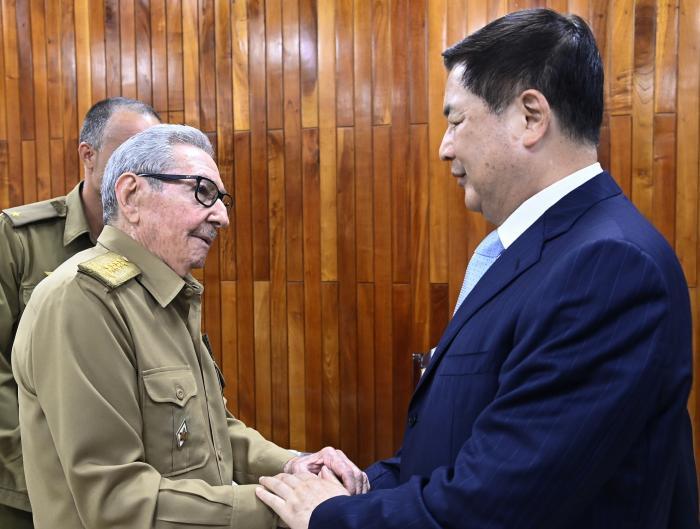 Bei dem Treffen erinnerte Raúl an die historischen Freundschaftsbeziehungen zwischen den beiden Völkern und richtete einen herzlichen Gruß an den Ersten Sekretär der Kommunistischen Partei Chinas und Präsidenten dieses brüderlichen Landes, Genosse Xi Jinping. Er bedankte sich für die zeitnahe Zusammenarbeit dieses Landes mit Kuba angesichts der komplexen Situation, in der sich unser Land befindet.