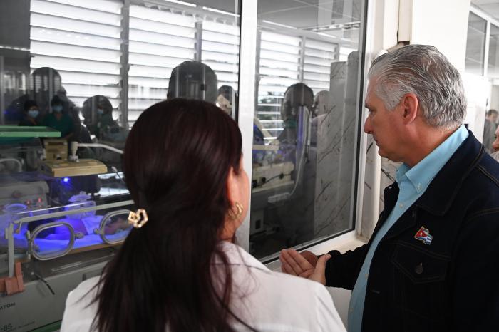 Nach dem Besuch der Hämodialysestation, in der derzeit 18 Patienten behandelt werden, kam der kubanische Staatschef zur Neonatologie, die vor zwei Jahren eingeweiht wurde und als eine der besten des Landes gilt.