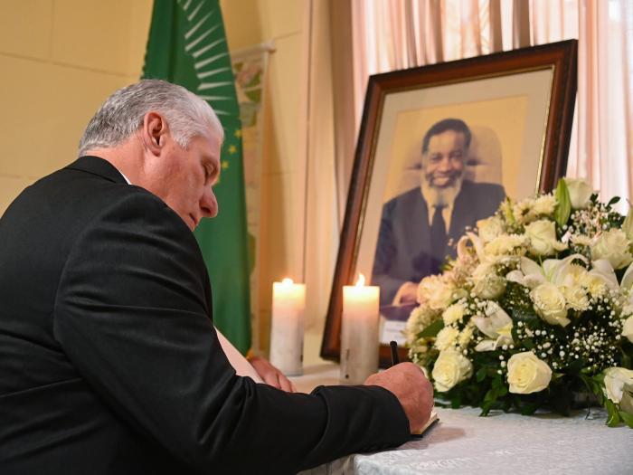 „Mit tiefer Trauer nehmen wir die Nachricht vom Tod eines der besten Freunde der kubanischen Revolution, Seiner Exzellenz Dr. Sam Nujoma, zur Kenntnis“, schrieb der Erste Sekretär des Zentralkomitees der Partei und Präsident der Republik, Miguel Díaz-Canel Bermúdez, in das Kondolenzbuch, das in der Botschaft von Namibia in Havanna zu Ehren des Gründervaters dieser Schwesternation ausgelegt wurde.