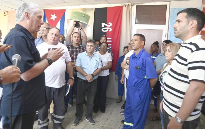 MATANZAS. – „Vieles von dem, was das Land erreicht, hat mit dem zu tun, was hier in Guiteras erreicht wird“, sagte Miguel Díaz-Canel Bermúdez, Erster Sekretär des Zentralkomitees der Kommunistischen Partei und Präsident der Republik, letzten Samstag in einem Gespräch mit einem Vertreter der Arbeiterschaft des symbolträchtigen Thermokraftwerks Antonio Guiteras.