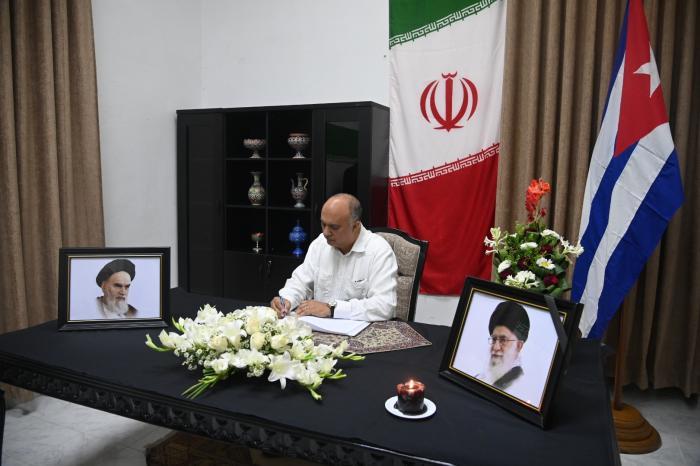 Der Erste Sekretär des Zentralkomitees der Kommunistischen Partei Kubas und Präsident der Republik, Miguel Díaz-Canel Bermúdez, war am Donnerstagmittag im Sitz der Botschaft der Islamischen Republik Iran auf der Insel, um sich in das zu Ehren des Großayatollahs Seyed Ali Khamenei geöffnete Kondolenzbuch einzutragen