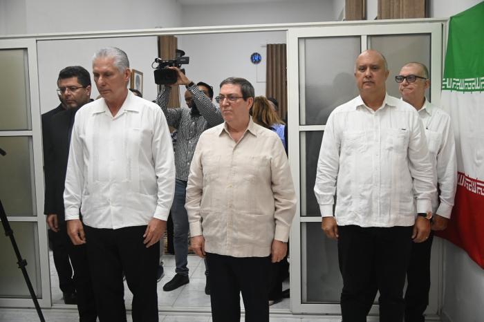 Im diplomatischen Sitz in Havanna wurde Díaz-Canel vom iranischen Botschafter Zabihollah Naderi empfangen und bei der einfachen Ehrung von dem kubanischen Außenminister Bruno Rodríguez Parrilla und dem Generaldirektor für Bilaterale Angelegenheiten des Außenministeriums, Carlos Miguel Pereira Hernández, begleitet.