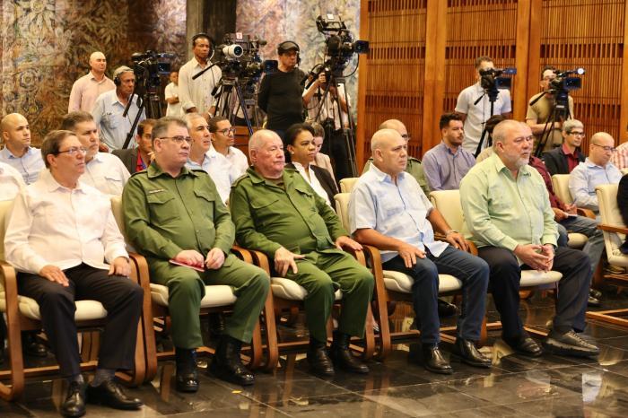 Ich möchte darauf hinweisen, dass auch mehrere Mitglieder des Politbüros an diesem Treffen teilnehmen, darunter Premierminister Manuel Marrero, das Politbüromitglied Roberto Morales Ojeda, unsere Minister der Revolutionären Streitkräfte und des Innenministeriums, unser Außenminister sowie eine Gruppe von Compañeros, die stellvertretenden Premierminister und Mitglieder des Exekutivausschusses des Ministerrats, von denen einige Erläuterungen geben werden. Die Gespräche zu all diesen Themen werden nächste Woche zusammen mit einer Reihe von Ministern fortgesetzt.